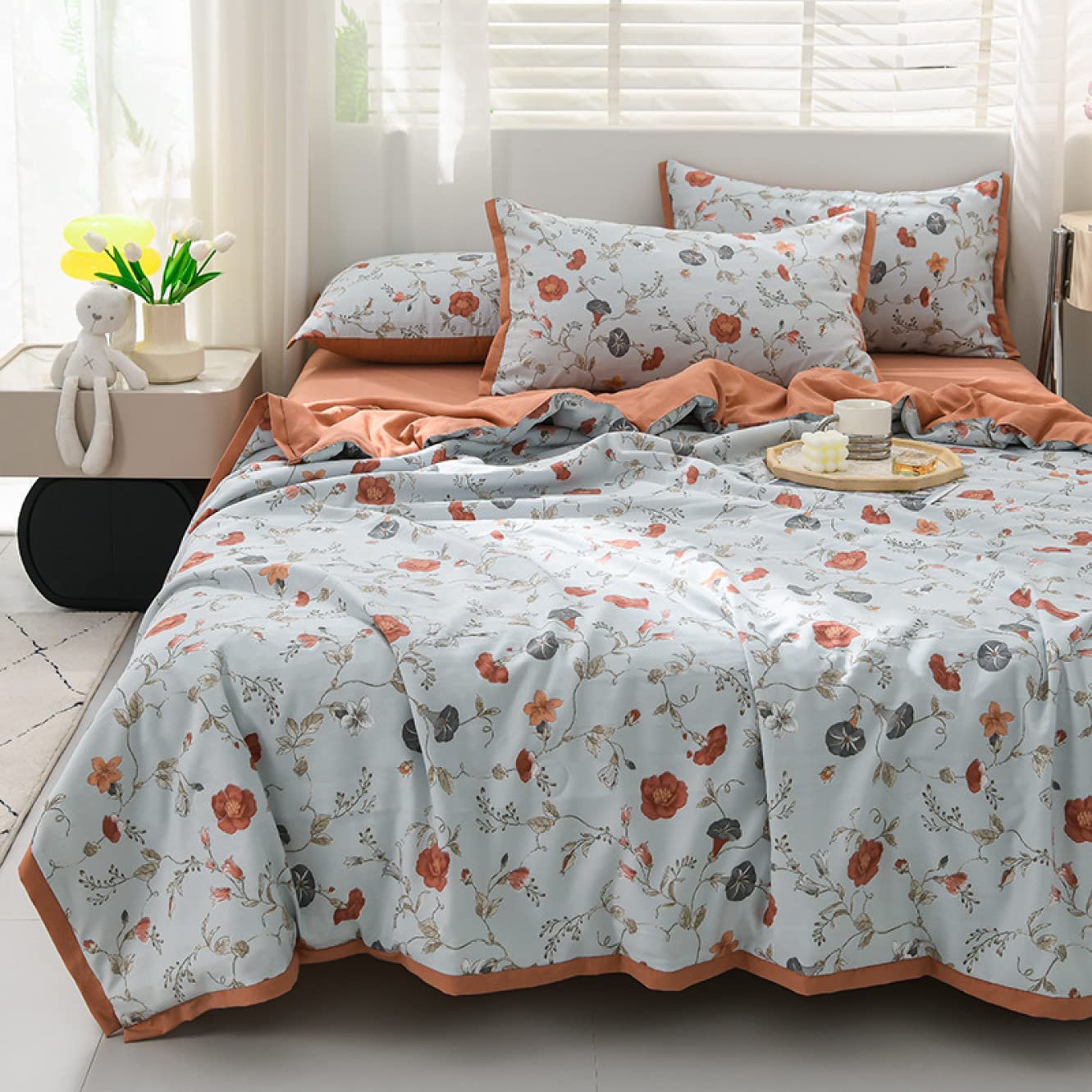 夏用掛け布団 肌掛け布団 かわいい 花柄 北欧 リバーシブル 接触冷感 吸湿速乾 抗菌防臭 洗える かけ布団 キルトケット 夏ふとん ひんやり