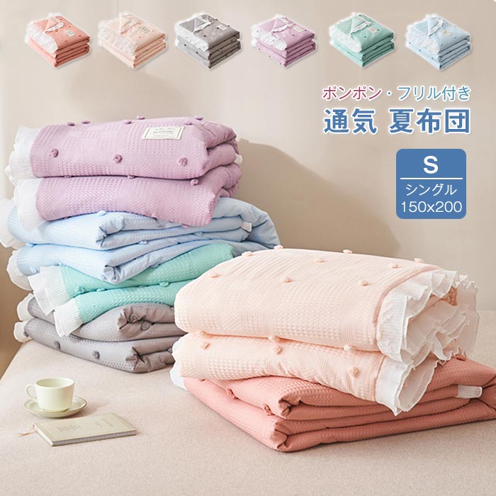 肌掛け布団 カバー不要 夏ふとん ポンポン付き 洗える 夏布団 肌布団 夏掛け布団 冷房対策 フリル・・・