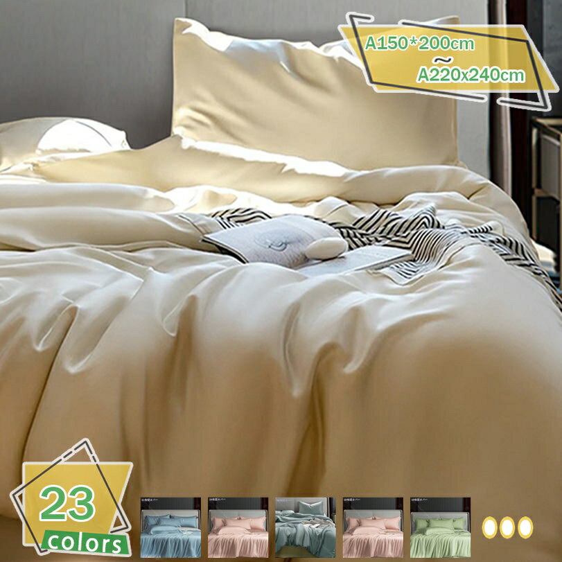 掛け布団カバー シングル おしゃれ 夏 ダブル 冷感 無地 かけ布団カバー ツルツル ボックスシーツ 光沢 シルク風 フラットシーツ 4点セット 洋式・和式兼用 心地よい肌触り 通気
