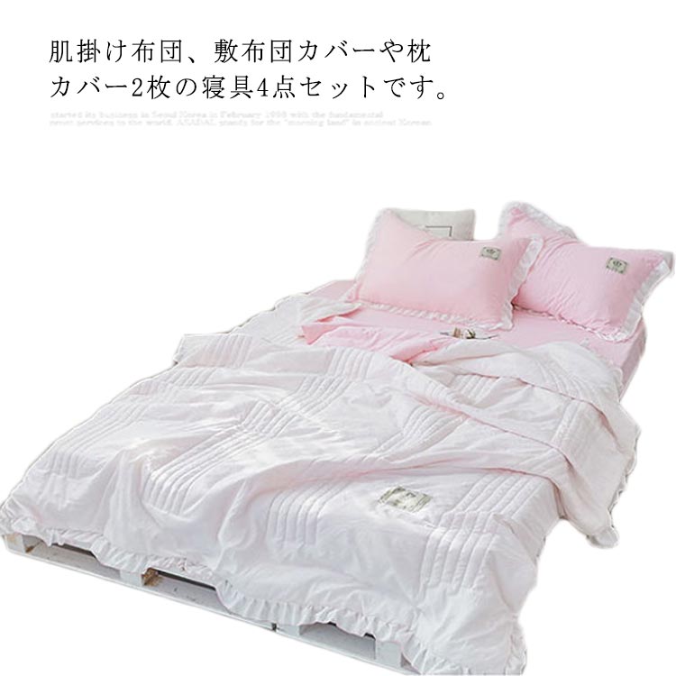 【送料無料】夏布団 布団セット 姫系 シングル 4点セット 肌掛け布団 フラットシーツ 枕カバー付き・・・