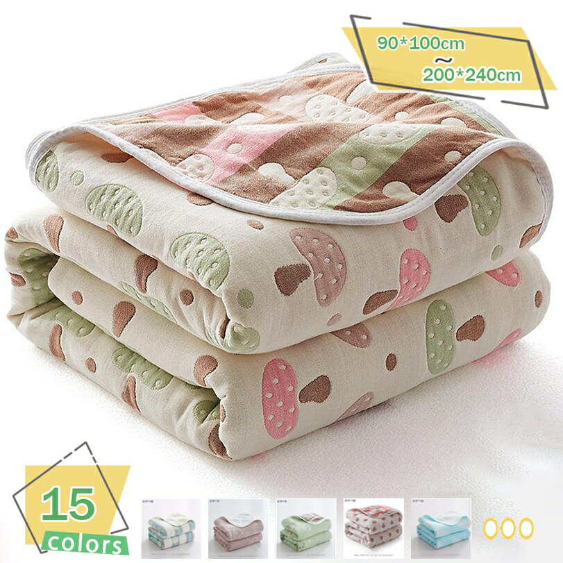 タオルケット 6重 ガーゼケット シングル 柔らかなガーゼ コットン100% 6重ガーゼ 綿100% 洗える お手入れ簡単 キルトケット サマーキルト きのこ柄 ガーゼタオルケット 6重ガーゼ