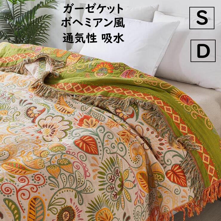 ガーゼケット 夏布団 ボヘミアン風 花柄 タッセル 綿100% ガーゼ 涼感 吸湿 吸水 軽い 肌掛・・・