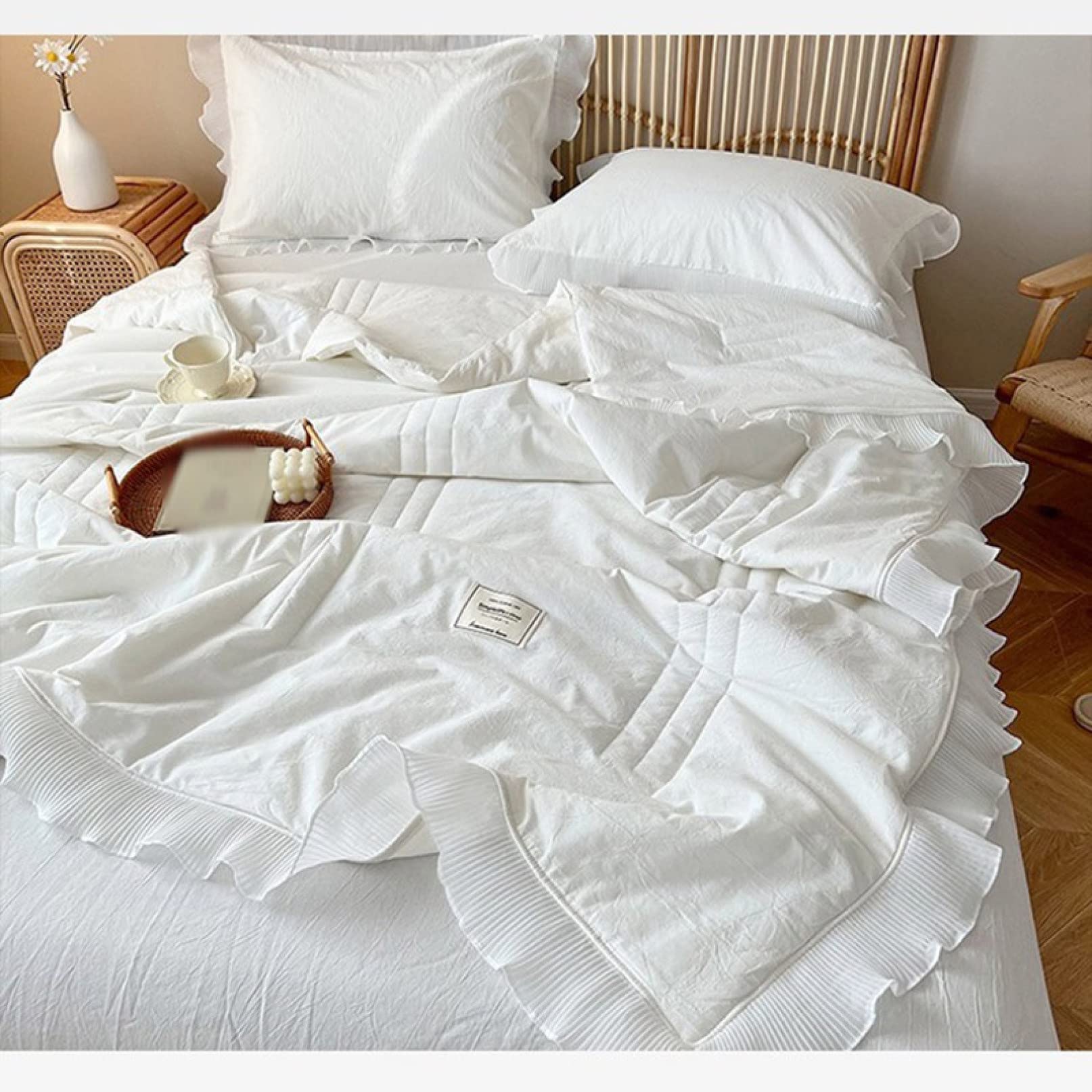 夏掛け布団 夏ふとん ダブルサイズ ホワイト D 無地 超軽量 レース付き 夏布団 シングル 薄手の・・・