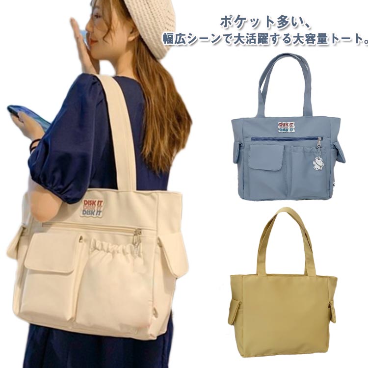 トートバッグ レディース A4 トートバッグ 大きめ 多機能 ポケット 肩掛け バッグ 多収納 シンプル 軽量 おしゃれ