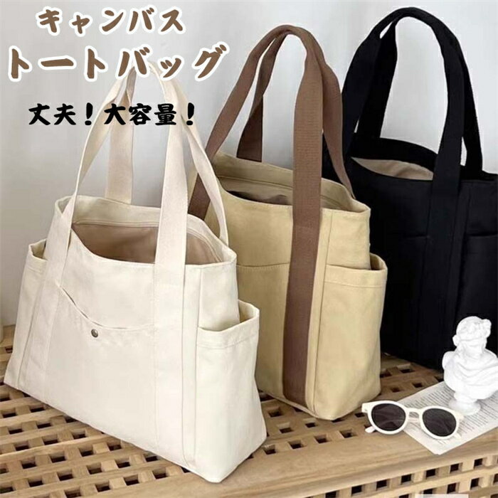 【コスパ最高!期間5倍積分!11/17まで】トートバッグ キャンバス 肩掛け 大きめ ファスナー付き・・・