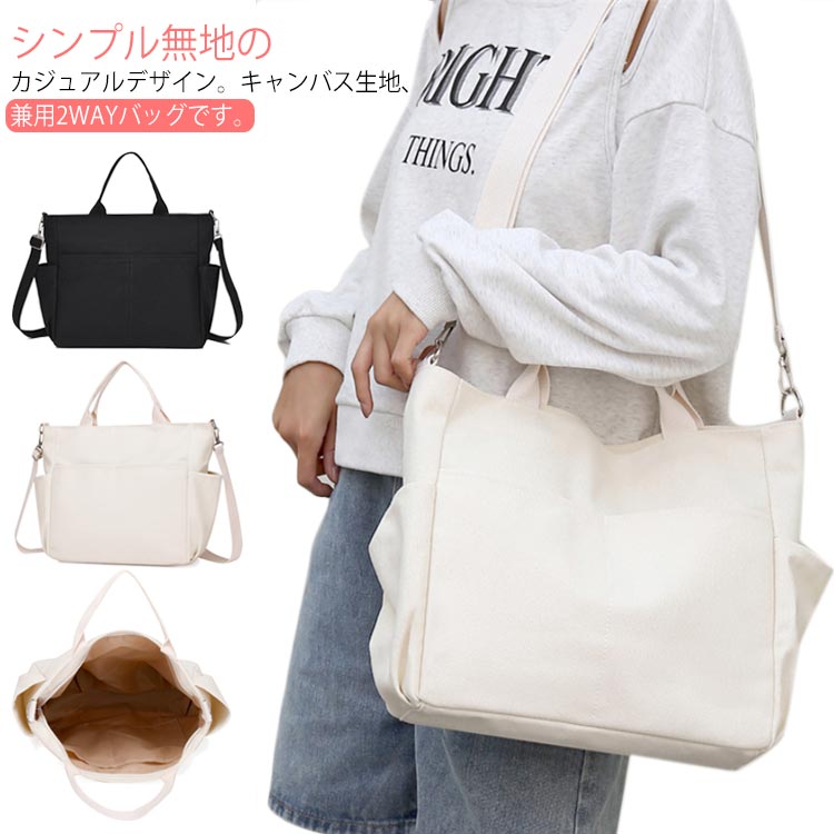 大容量 A4 ショルダーバッグ バッグ 2WAY 手提げ 軽量 レディース 斜めがけ レディース 肩掛け 無地 シンプル キャンバス 通勤 トートバッグ