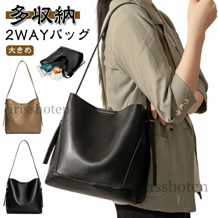 ソフトな手触りの良いフェイクレザーバッグ トートバッグ ソフト フェイクレザー2WAY ショルダーバッグ 肩掛け ベルト お出かけ 通勤 旅行 長財布 ペットボトル