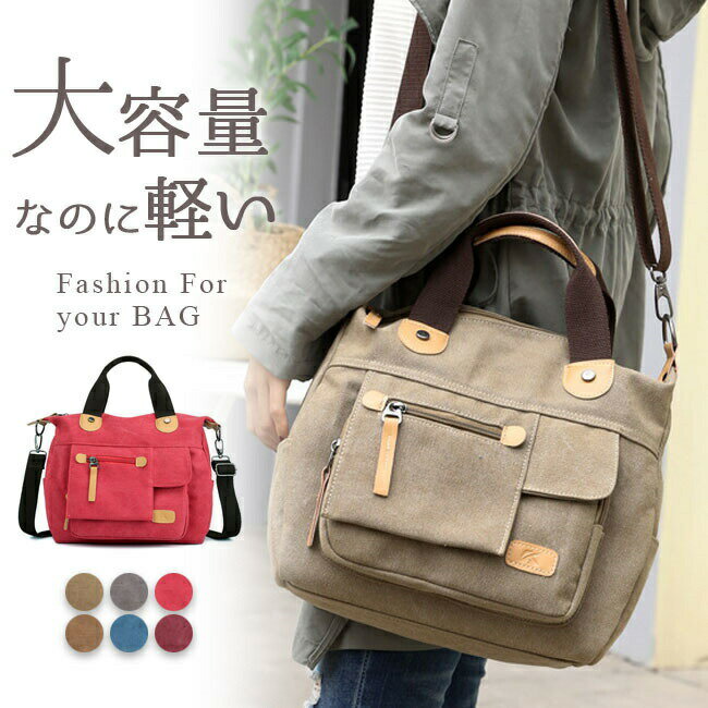 ショルダーバッグ レディース 斜めがけ トートバッグ ショルダー付き キャンバス 帆布 大きめ ハンドバッグ 多収納 大人 肩掛け 通勤 通学 無地 シンプル ポケットたくさん お出かけ
