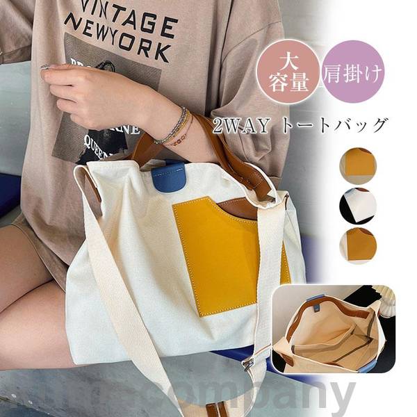 キャンバストート 2WAY ポケット 収納 大きめ 大容量 マチ広 かわいい 多収納 旅行 マザーズバッグ エコバッグ 斜め掛け 肩掛けトート 普段 使い 無地 中学生 高校生 大学生
