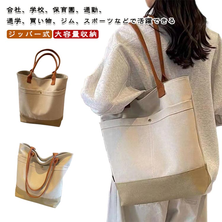 トートバッグ カバン 肩かけ 大人 学生 多収納ポケット マチあり