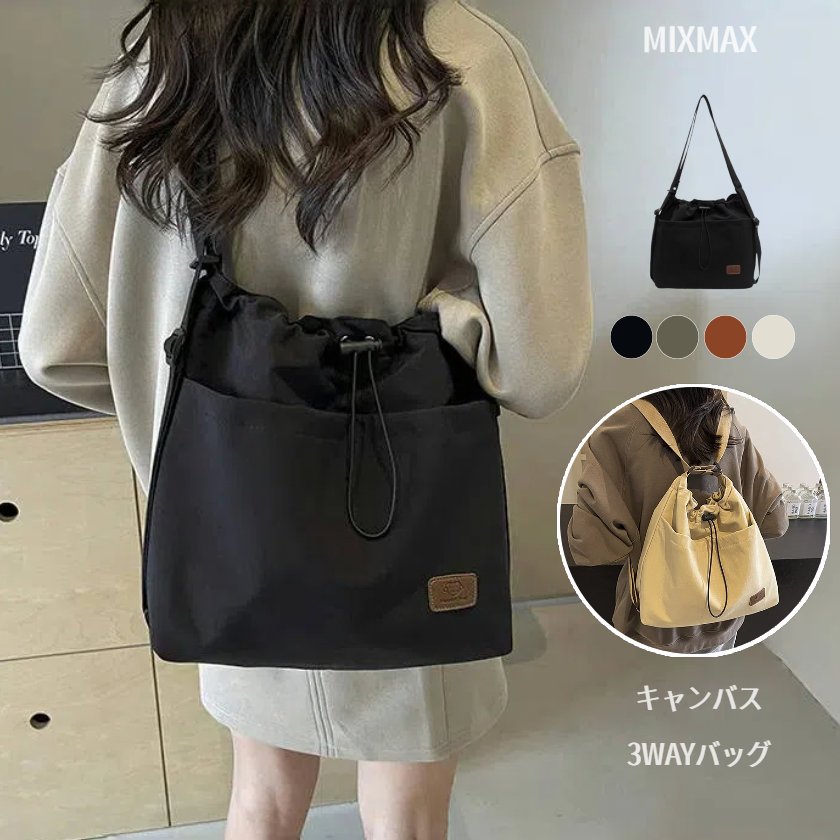 ショルダーバッグ レディース 3way リュック 巾着バッグ キャンバス バッグ キャンバス 多収納・・・