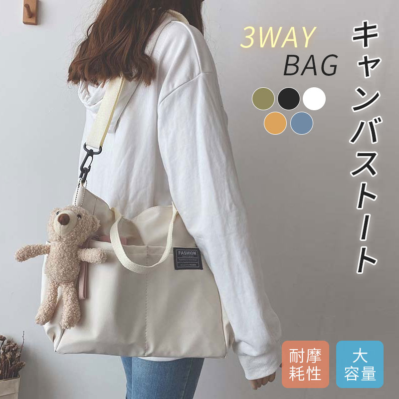 カジュアルなキャンバス地で通勤・通学にも◎ 大きめサイズでたっぷり収納 もしっかり入る 内ポケットと外ポケット付き 可愛い 無地 帆布 マザーズバッグ 3way ショルダーバッグ
