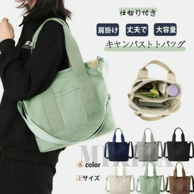 トートバッグ レディース キャンバス 大きめ a4 小さめ ミニ 通勤 通学 無地 仕切り 布 帆布・・・