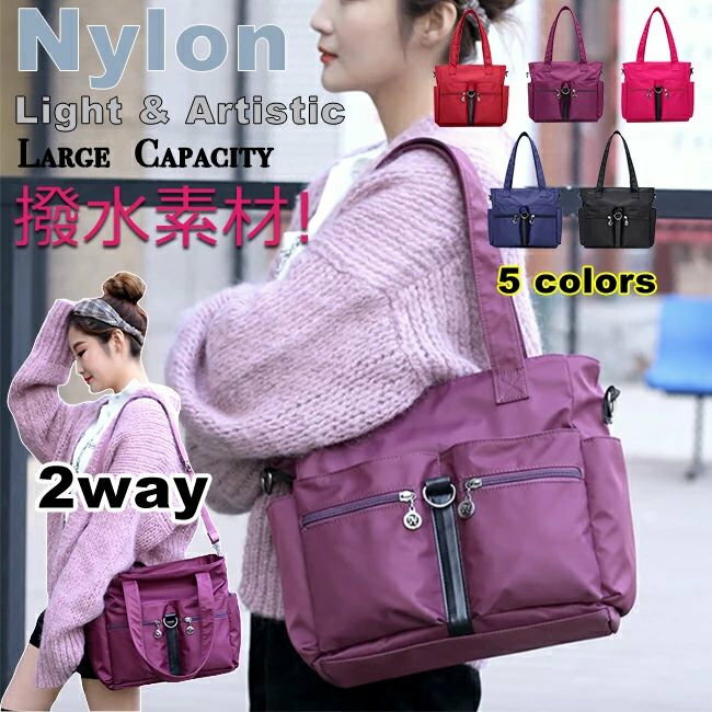 トートバッグ ショルダーバッグ バックway レディース 撥水 ナイロン 多収納 ポケット充実 大容・・・
