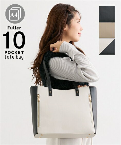 バッグ(鞄) 10ポケット ポケットが充実 シンプル トート A4対応 きれいめ オフィス ビジネス・・・
