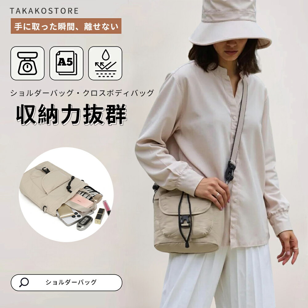 ショルダーバッグ レディース バッグ 春 夏 秋 冬 ナイロン ドロスト 2Way 軽量 ポケット付き ショルダーバッグ オフィス カジュアル 男女兼用