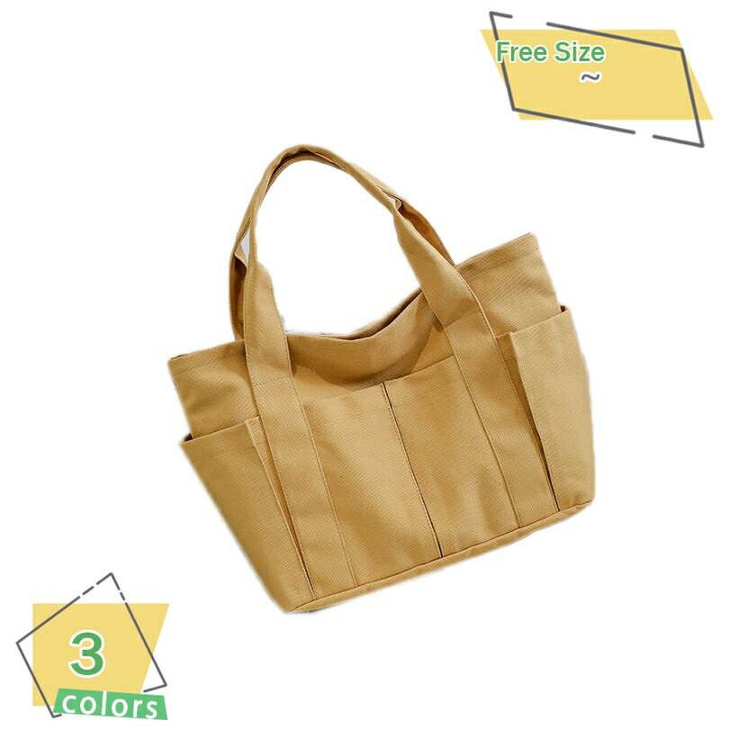 多収納ポケット 可愛い無地キャンバストート 多機能 お弁当 シンプル 仕事 保育園 中学生 高校生