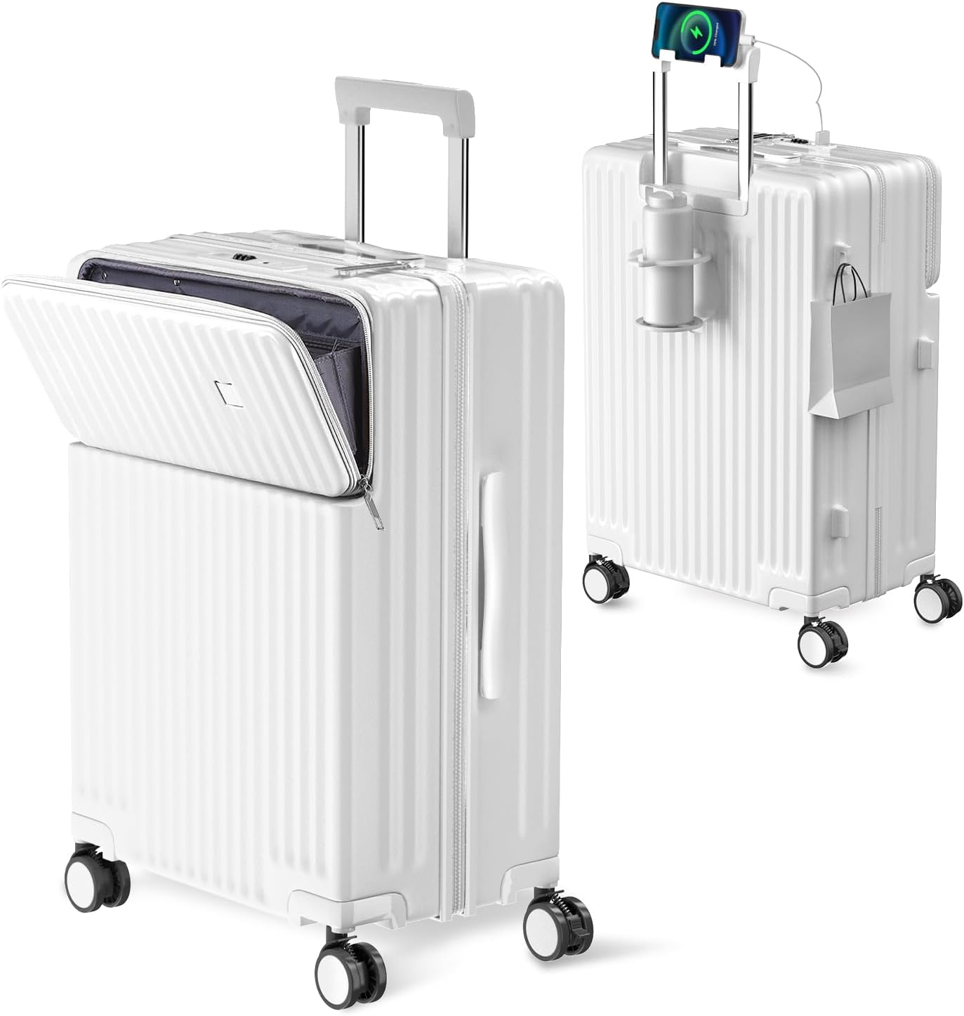 [VARNIC]スーツケースフロントオープン式多機能キャリーバッグUSBポート付きカップホルダー付き・・・