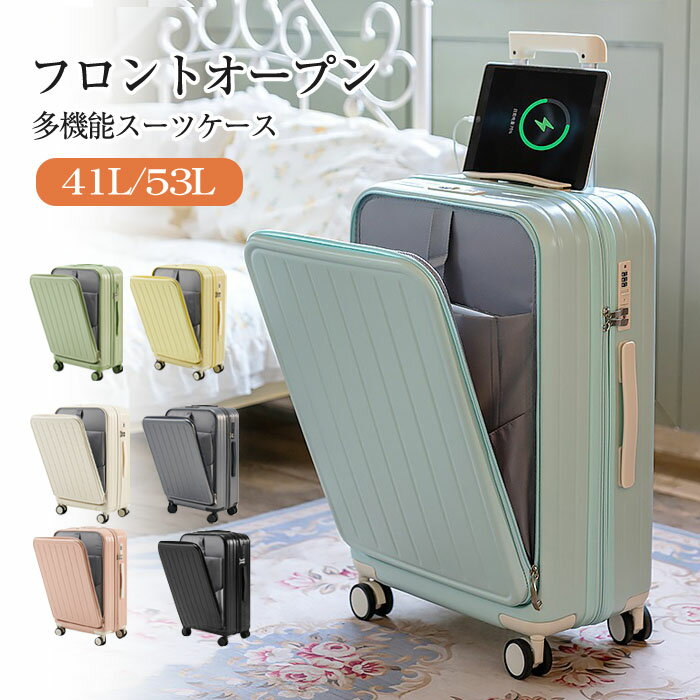 母の日セール 8輪 キャリーバッグおしゃれ かわいい 多機能 スーツケース 安い おしゃれ フロントオープン 超軽量 USBポート付き 前開き ハードケース 旅行 かわいい 可愛い