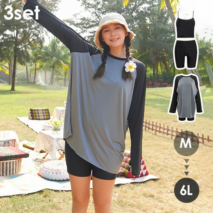 水着 タンキニ レディース 体型カバー 中学生 高校生 3点セット ラッシュガード 4L 5L 6L