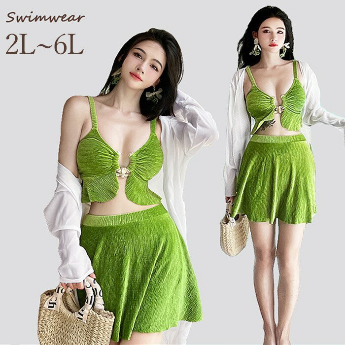 3点セット 水着 大きいサイズ レディース ぽっちゃり ビキニ セパレート グリーン 緑 オーバーサイズ