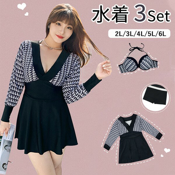 3点セット 新作 6L 7L 大きいサイズ レディース タンキニ水着 ぽっちゃり 体型カバー 温泉に・・・