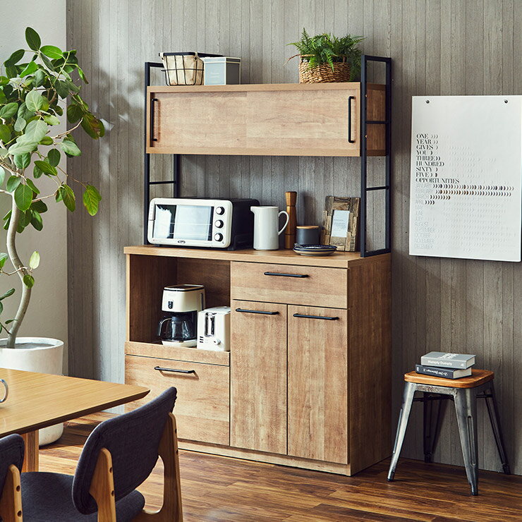 食器棚 アイアン フレーム レンジ 国産 キッチンボード カップボード キッチン収納 西海岸風 120幅 幅120 ビンテージ ヴィンテージ 収納 料理男子 家事シェア ユニセックス カフェ風 収納