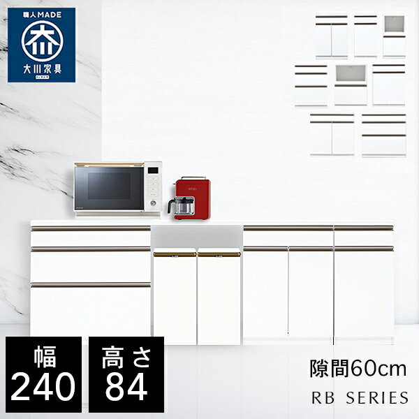 キッチンカウンター 幅240cm 空間60cm キッチンカウンター 240幅 レンジ台 完成品 大型レンジ対応 ホワイト 国産 大川家具 日本製 ハイカウンター ハイグロス