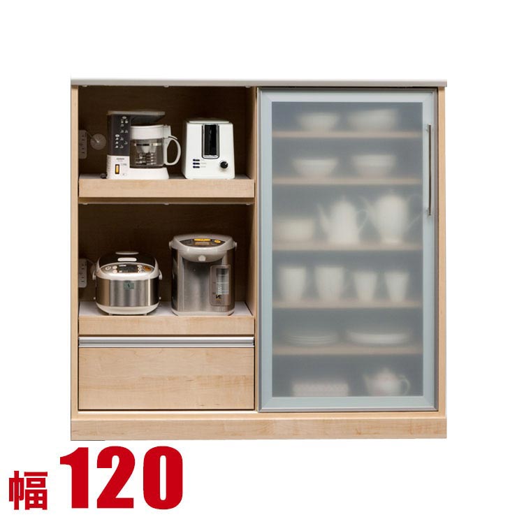 キッチンカウンター 収納 大川家具 120 レンジラック メープル 抜群の収納力を誇る引き戸タイプ ・・・