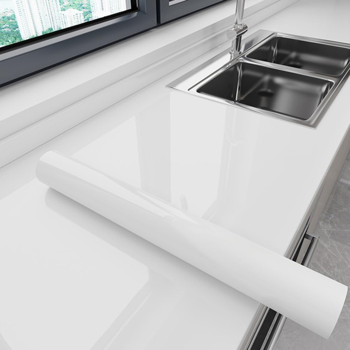 巾60cm × 長さ5m!簡単DIY シールを貼るだけ!キッチン扉 リビング 寝室 トイレ 洗面所 お部屋 可愛いインテリアシート!剥がれ ない 大理石 光沢 ブラック オフホワイト!送料無料!