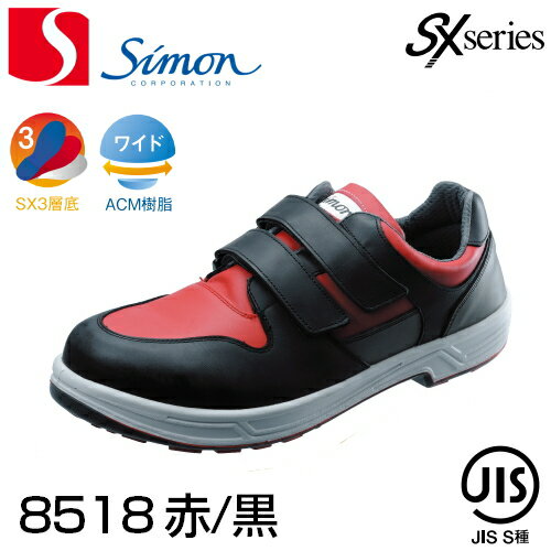シモン 安全靴 トリセオ 8518 マジックタイプ 黒/赤 | 安全 ブーツ シューズ 靴 現場 作・・・