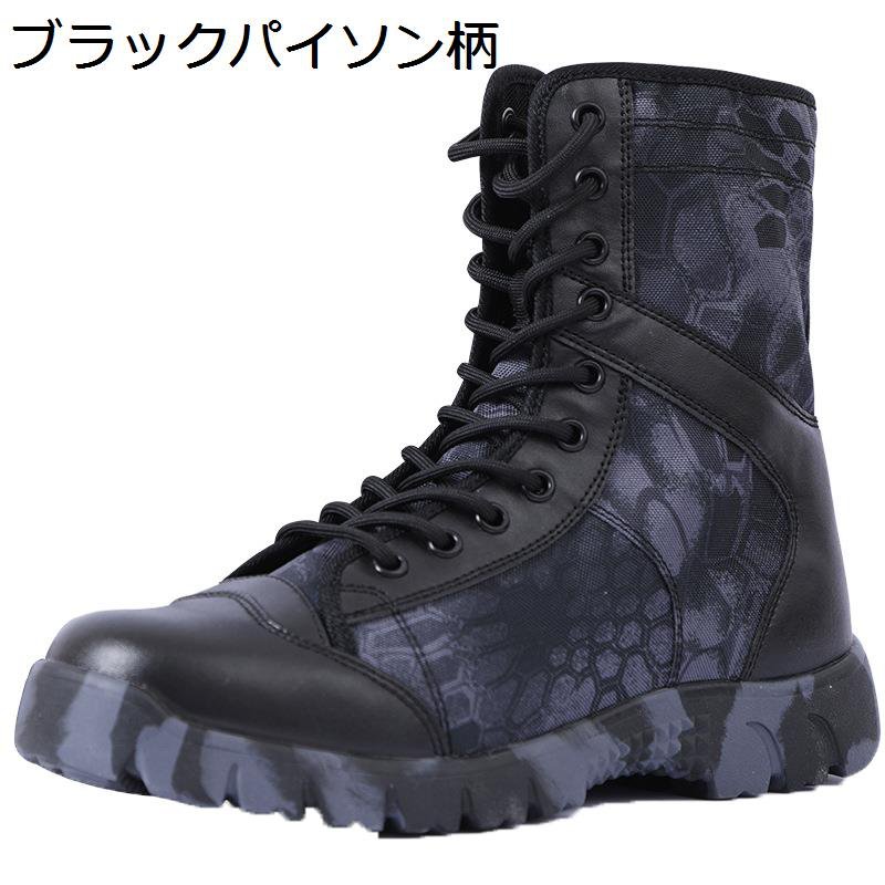 ミリタリーブーツ 砂漠靴 メンズ タクティカルブーツ メッシュ パイソン柄 ミドルカット 編み上げ ・・・