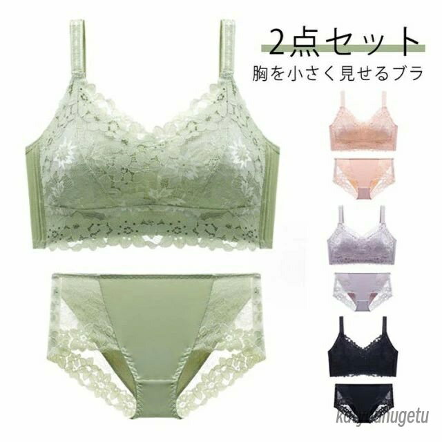 ブラジャー おしゃれ 送料無料 大きな胸を小さく見せる 上下セット 胸着やせ ノンワイヤー レース セット ショーツ 痩せて見える 着痩せブラ 胸を小さく見せるブラ