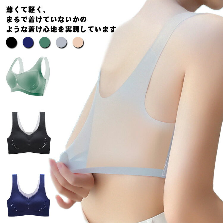 ブラ 極薄 接触冷感 ブラジャー 大きいサイズ シームレス ノンワイヤー スポーツブラ レディース ・・・