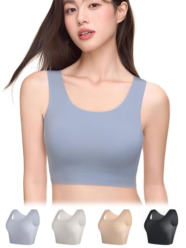 [Yimuaya]胸を小さく見せるブラブラジャー着痩せ高通気肌に優しいノンワイヤーブラ薄型パッド大き・・・