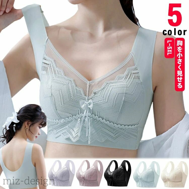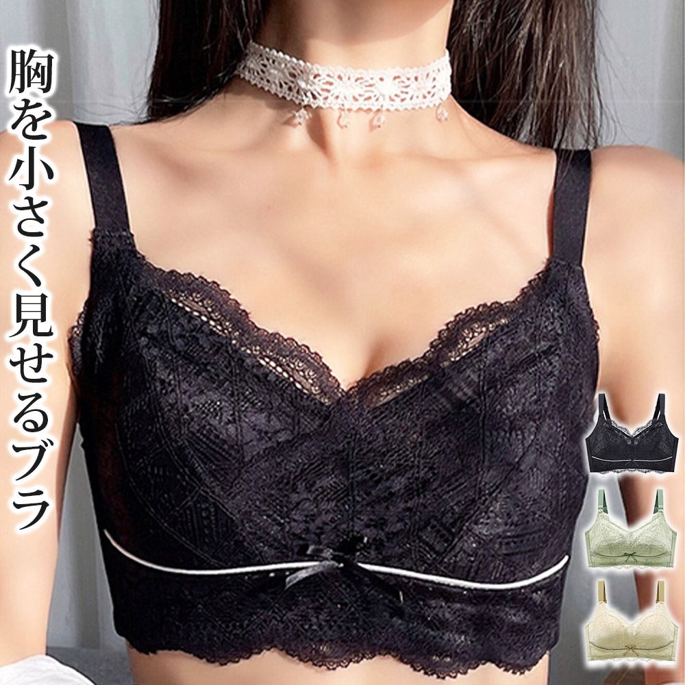 小さく見せるブラジャー ブラジャー レース ブラ 花柄 胸を小さく見せるブラ ノンワイヤー 薄手 胸・・・