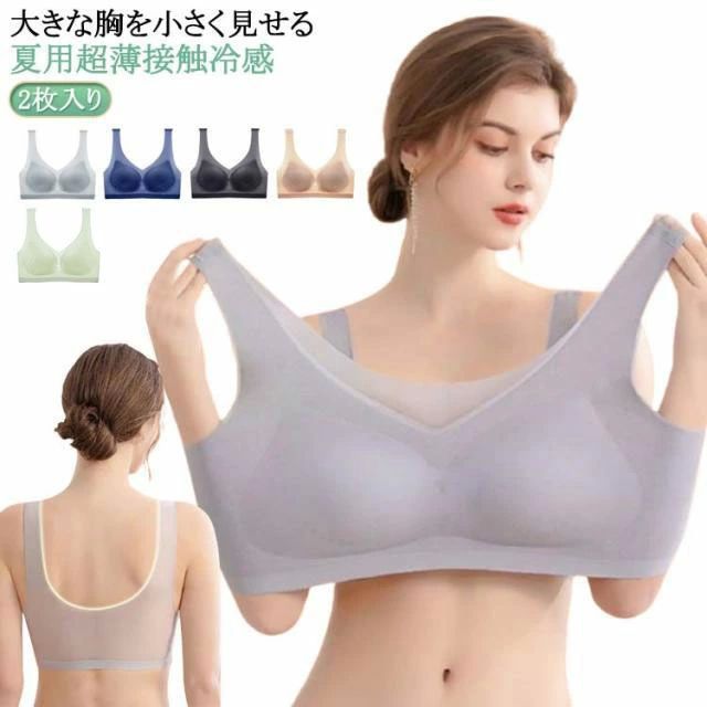 2枚セット 胸を小さく見せるブラ ブラジャー 超薄手カップ ノンワイヤーブラ ナイトブラ フルカップ・・・