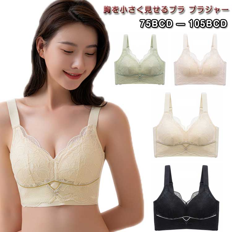胸を小さく見せるブラ ブラジャー 小さく見せる 薄手 ノンワイヤーブラ レース 大きいサイズ 通気 ・・・