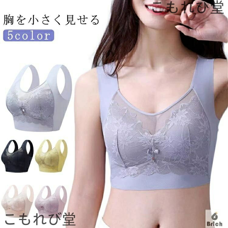 胸が小さく見えるブラ 胸を小さく見せるブラジャー レディース 総レース ブラジャー ノンワイヤーブラジャー 薄手 着痩せブラ 育乳ブラジャー