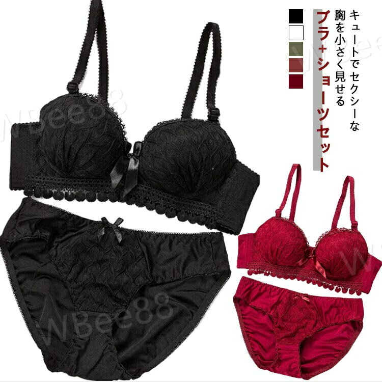 胸を小さく見せるブラ ショーツ 2点セット レース 補正ブラ 谷間 ブラ 小さく見せるブラジャー 脇高 ブラジャー ショーツ 上下セット ショーツセット かわいい
