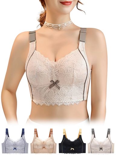 ノンワイヤーブラジャー胸を小さくみせる小さく見えるブラレース付き四段ホック着痩せブラ脇高補正下着美背美胸ブラジャー大きいサイズ