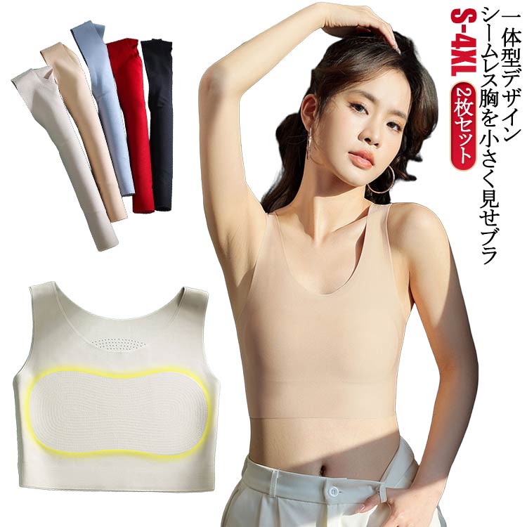 小さく見せるブラ 女性用ブラジャー レディース 夏用 通気性 胸を小さく見せるブラ シームレス ノンワイヤーブラ 肌に優しい 脇高ブラ 無地 シンプル