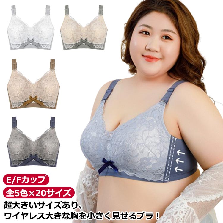 レース 胸を小さく見せる ブラジャー E/Fカップ 大きいサイズ ブラ ブラ ブラジャー 薄い ノン・・・