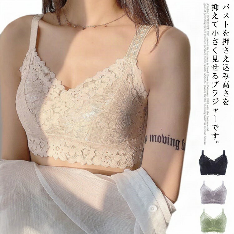 レディース 胸が小さく見えるブラ ブラジャー 総レース 胸を小さく見せるブラジャー ノンワイヤーブラジャー 薄手 薄手