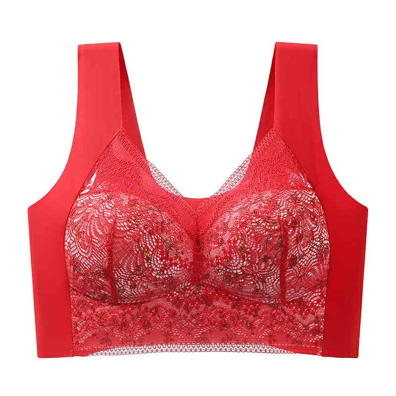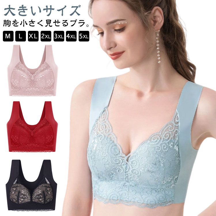 L〜5XL 胸を小さく見せるブラ ノンワイヤー レース かわいい 快
