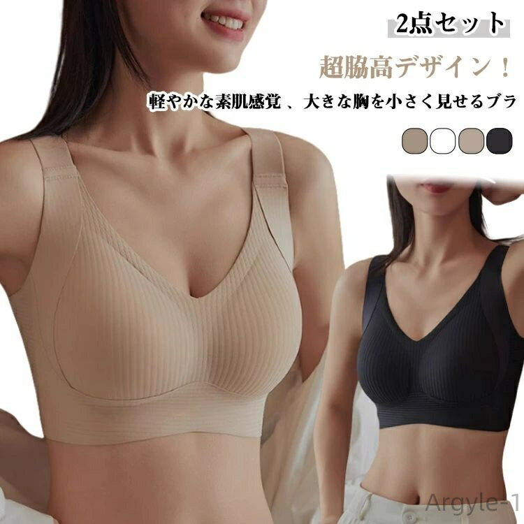 ブラ ブラジャー 2枚セット 胸を小さく見せるブラ ナイトブラ 脇高 ノンワイヤーブラ 昼夜兼用 薄・・・