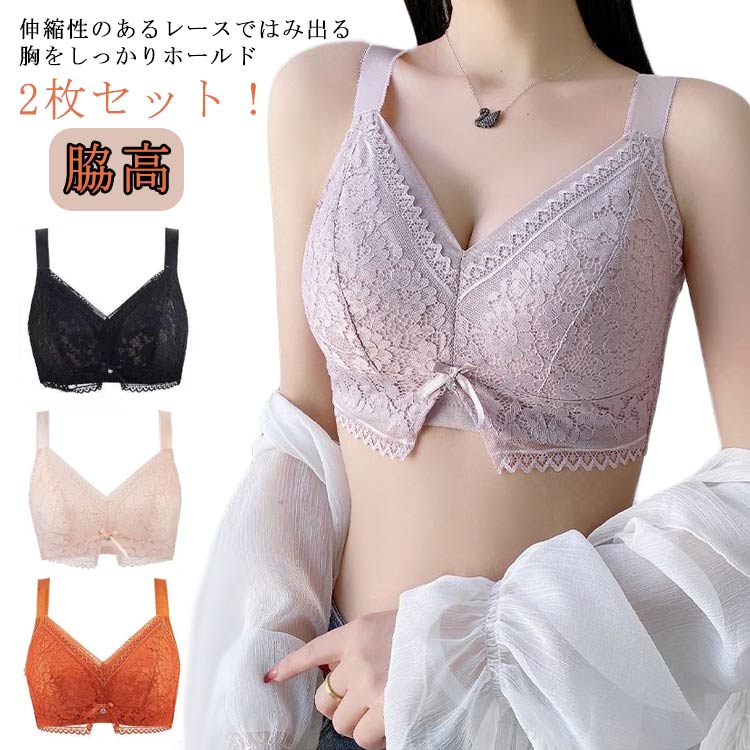 【2枚セット】育乳ブラ ブラジャー レース 脇高ブラ ナイトブラ 補正下着 ノンワイヤー 胸を小さく・・・