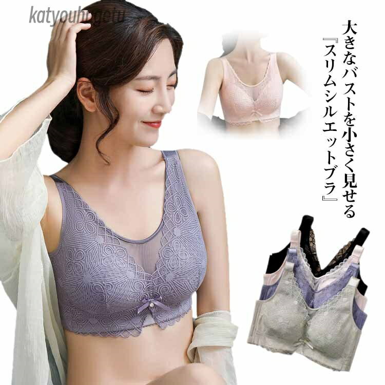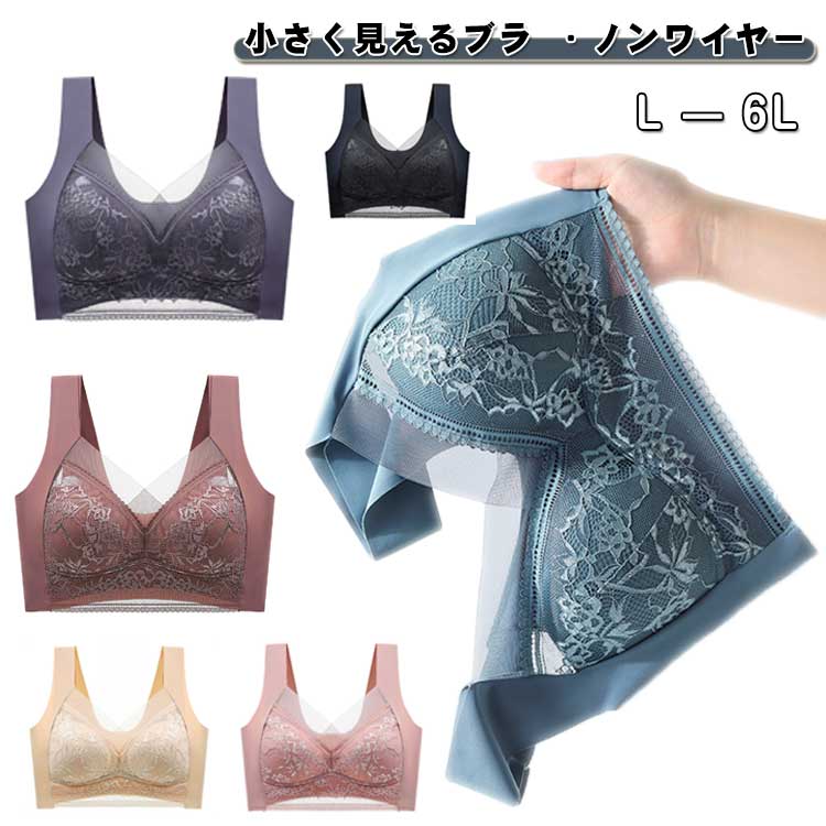 小さく見せるブラ レースブラジャー 大きいサイズ ノンワイヤーブラ レディース ブラジャー インナー