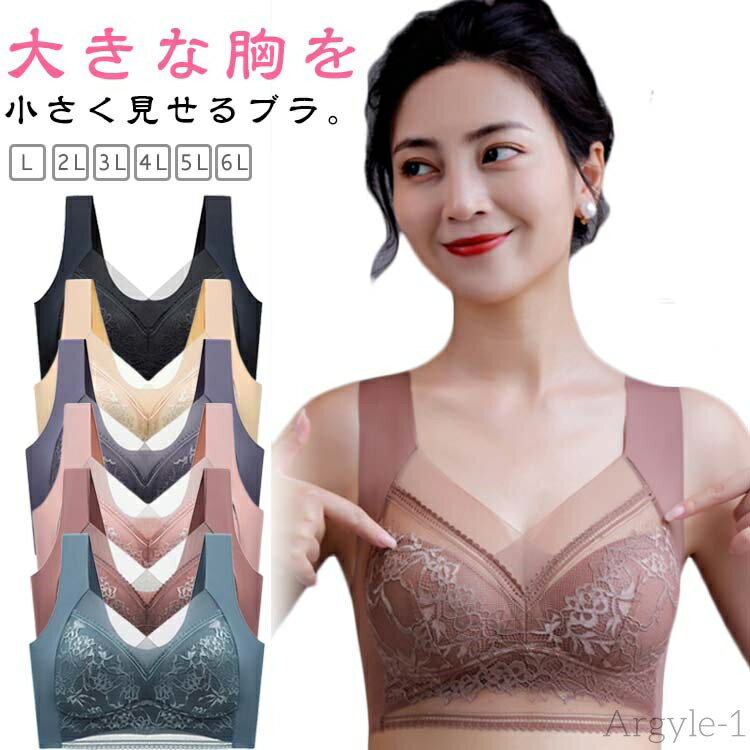 【送料無料】ワイヤレス レース 花柄 大きな胸を小さく見せるブラ 無縫製 ノンワイヤー 小さく見せる・・・