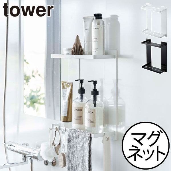 キッチン自立式スチールパネル用 マグネット ラック タワー tower カスタマイズ 簡単取付 キッチンラック サイドラック モノトーン ホワイト ブラック 置き スポンジ入れ 洗剤入れ